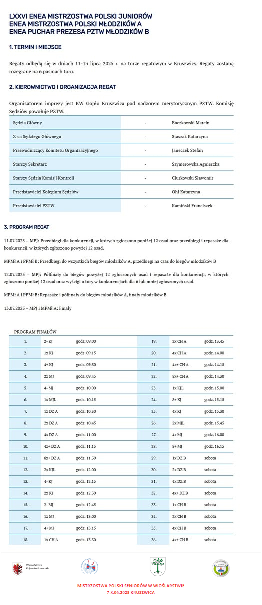 Województwa Kujawsko-Pomorskiego pod nadzorem merytorycznym Polskiego Związku Towarzystw Wioślarskich.